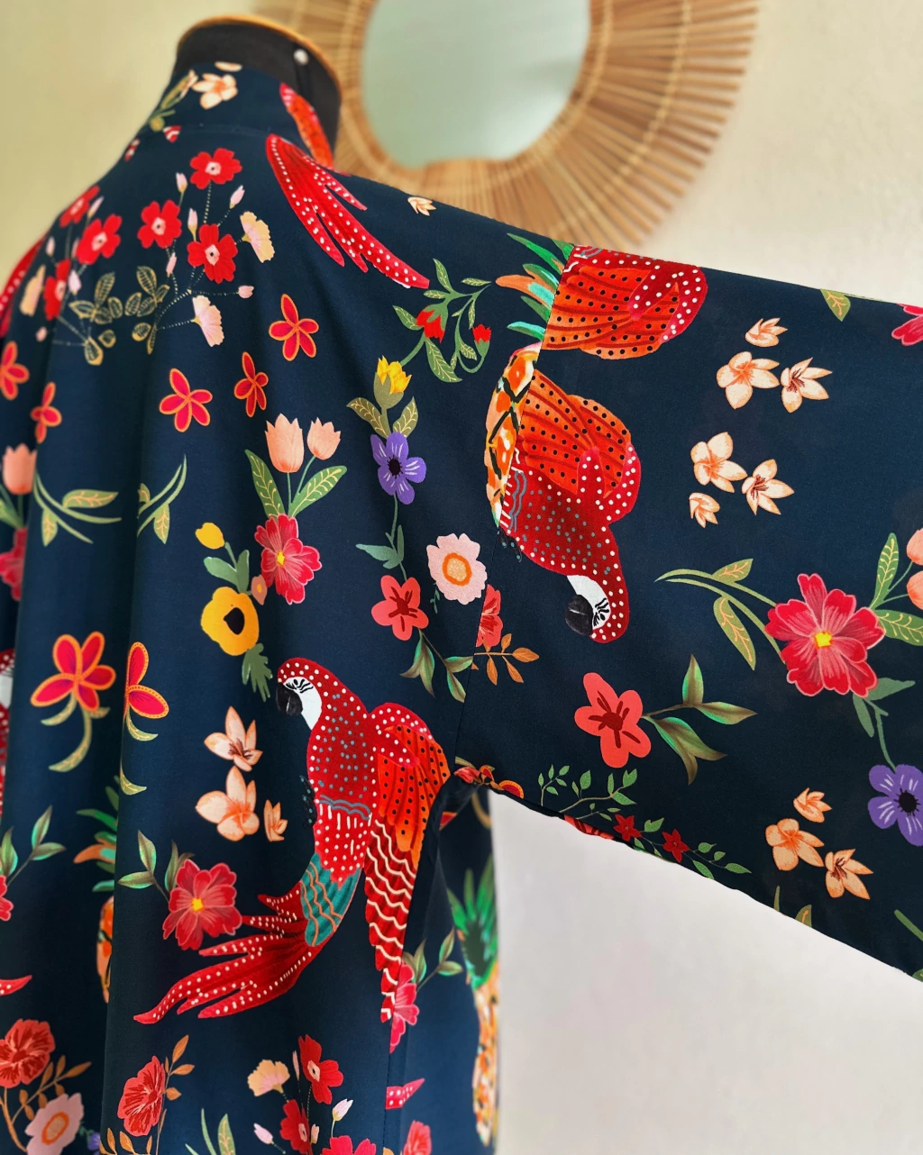 Kimono Amplo Modelagem soltinha, mangas bem amplas e caimento fluido. Veste com folga até o manequim 48/50. |