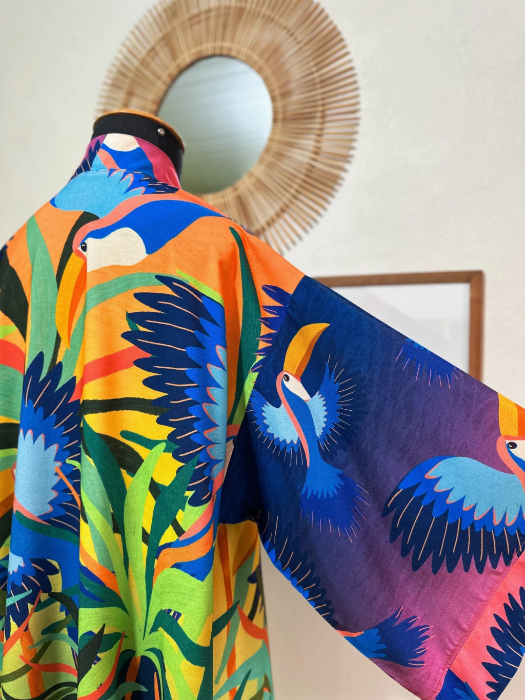 Kimono Amplo Modelagem soltinha, mangas bem amplas e caimento fluido. Veste com folga até o manequim 48/50. |