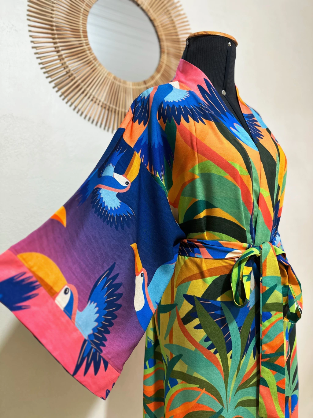 Cheio de charme e leveza, este kimono é a escolha ideal para dar mais estilo às suas produções. Confeccionado em tecido macio e fresco, é uma peça versátil que pode ser usada tanto aberta quanto ajustada na cintura (quando acompanhado de faixa).